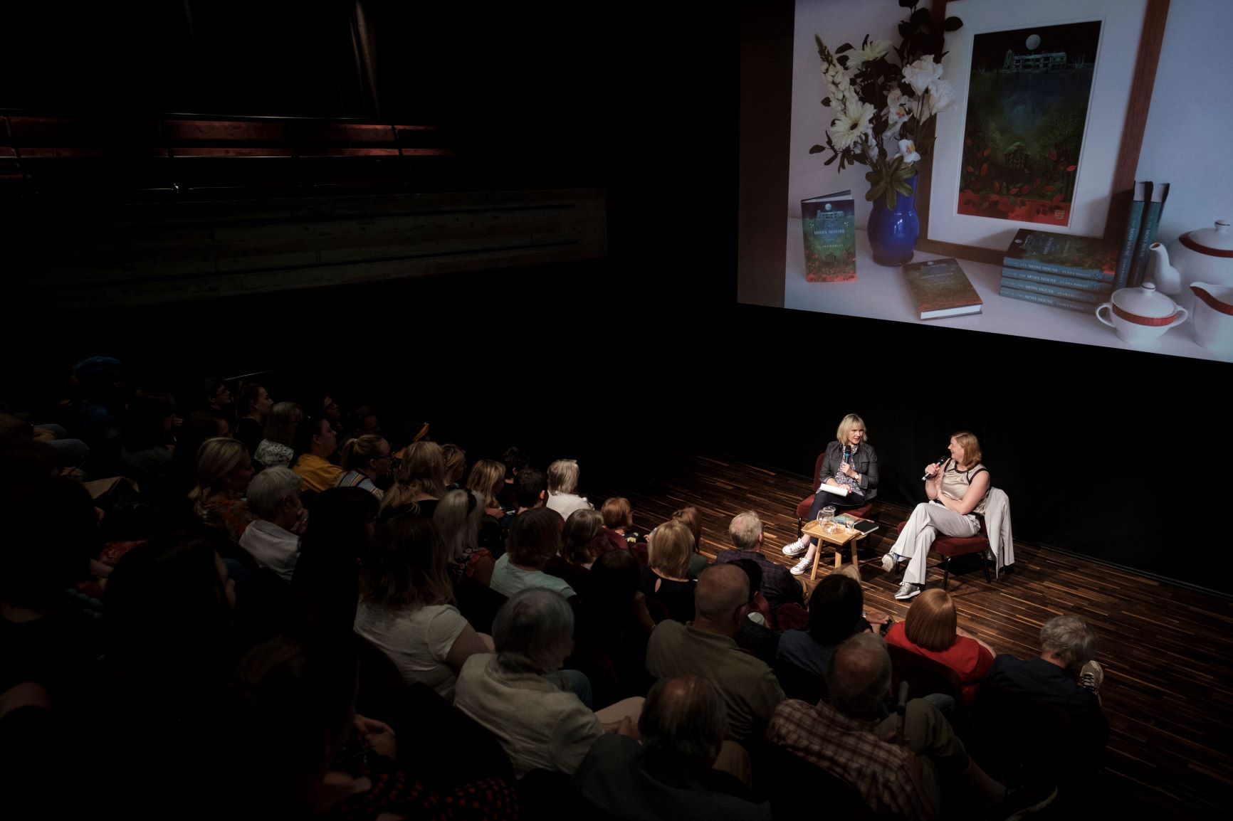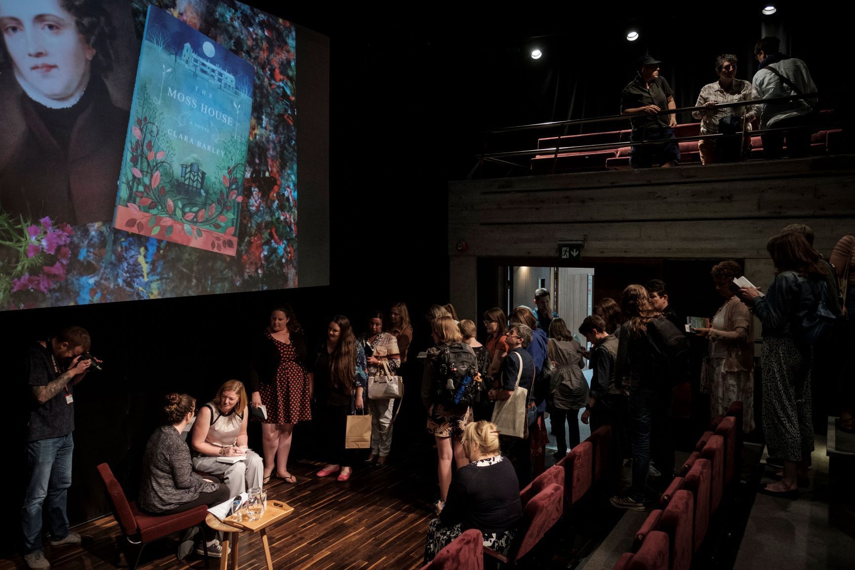 The Moss House book launch, 2019 A sold out book launch was held in July 2019 at Square Chapel Theatre in Halifax. Yvette Huddleston from the Yorkshire Post kindly offered to host the event and photos were taken by Jim Varney. The Book Corner Halifax were on hand to sell copies and the first photo shows Angela with Yvette, the Bluemoose Books team and editor Annie Warren. |