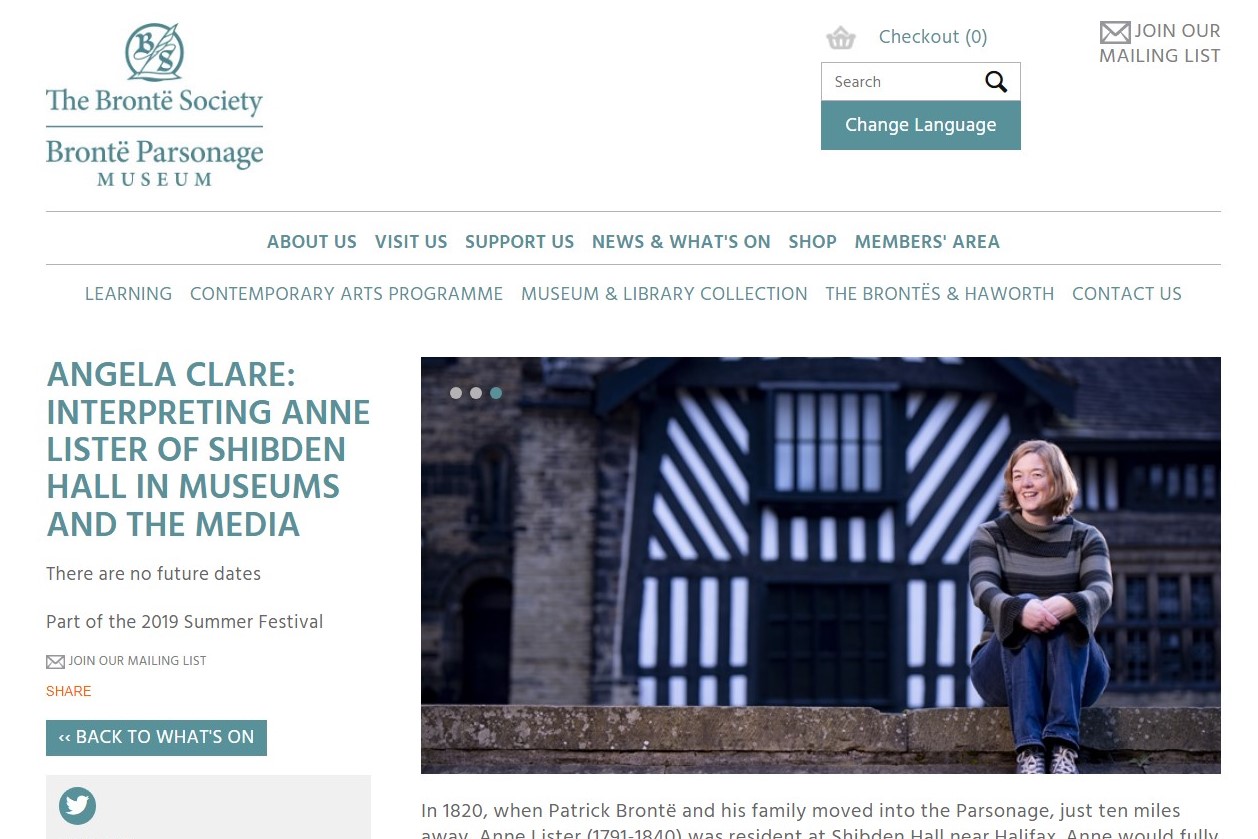 Bronte Parsonage: Interpreting Anne Lister, June 2019 Invited to speak about Anne Lister as part of the Parsonage's 2019 events. |